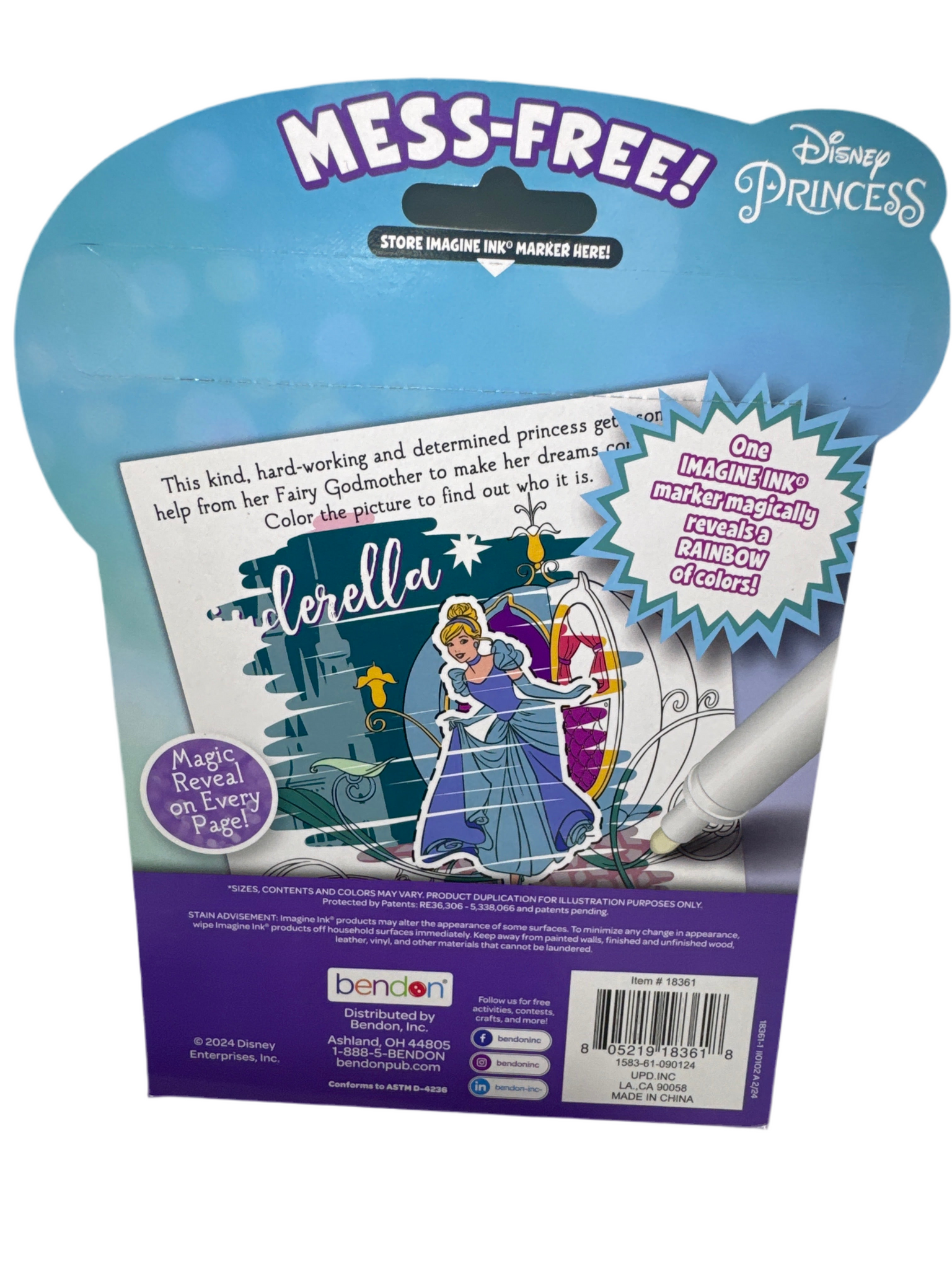 With this Disney™ Imagine Ink™ book, your little one can have hours of fun coloring adventures. A rainbow of colors is revealed when pages are colored with the special mess-free marker. Provides hours of quiet playtime at home, or on the go! Features Jasmin, Cinderella and Rapunzel, Mulan, Fairy Godmother, Pocahontas,and Bella from Beauty and the Beast